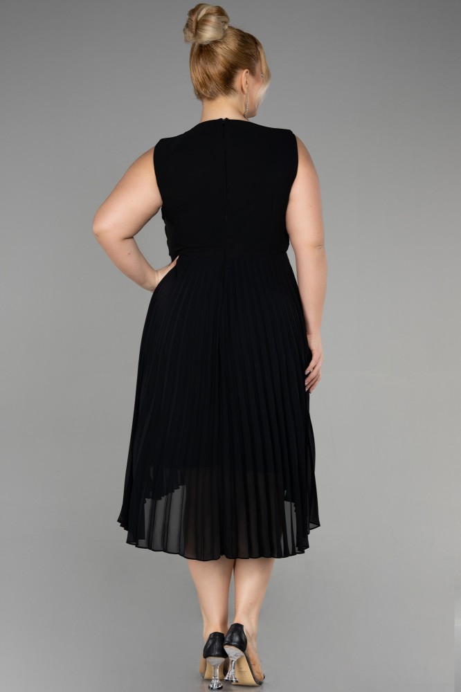 فستان أنيق متوسط الطول (ميدي). يتميز الفستان بقماش الشيفون الخفيف والناعم الذي يضفي لمسة من الرقة والانسيابية على التصميم. يأتي الفستان بقصّة بسيطة وأنيقة مع تنورة واسعة دائرية تمنحك حرية حركة مريحة. صمم الفستان بدون أكمام مع تفاصيل الزخارف الدقيقة التي تضفي لمسة نهائية أنيقة على الفستان.