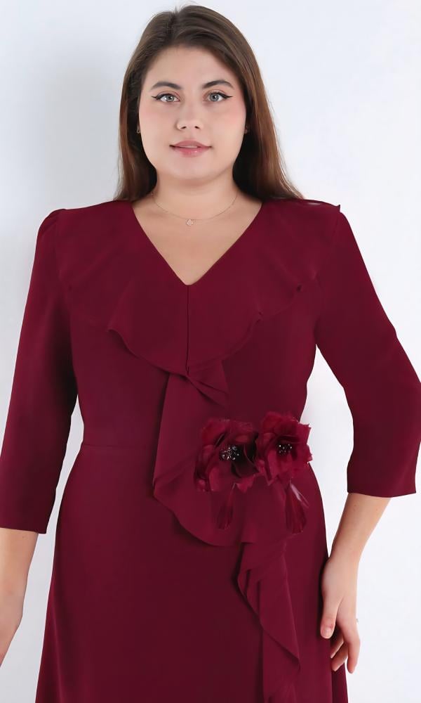 فستان ناعم مكشكش بأكمام متوسطة الطول – من اكسترا لايكبل