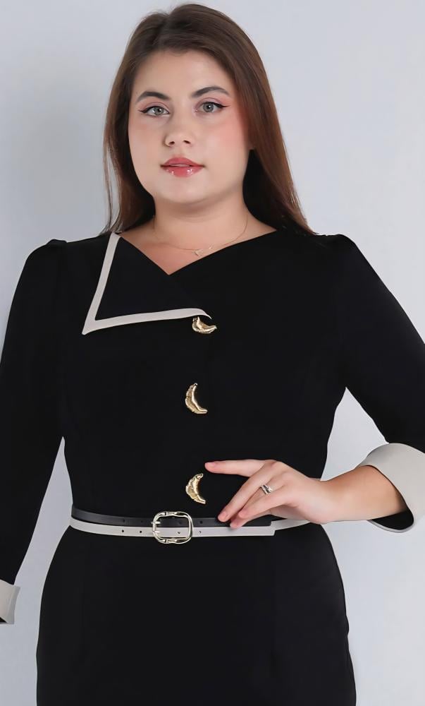 احدث فساتين تيور تصاميم عصرية مقاسات كبيرة في السعودية مع اكسترا لايكبل بخامات تركية نعرف ذوق المراة العربيةتسوقي فستان ميدي بياقة ناعمة وحزام مميز وتصميم ناعم راقي