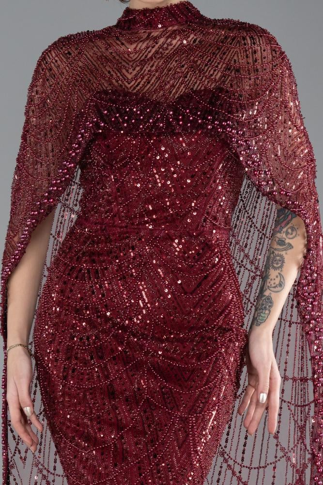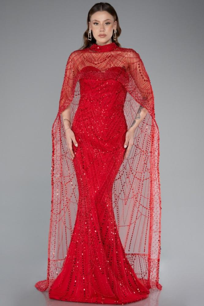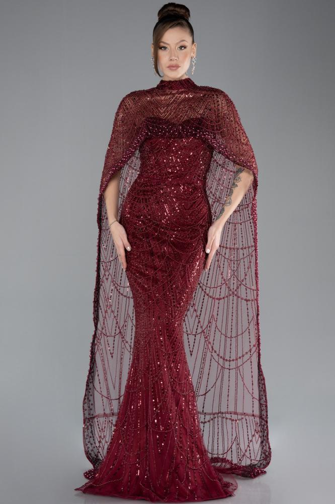• الأسلوب: تصميم فخم مزين بتطريزات لامعة مع شال شفاف يضفي لمسة ملكية.