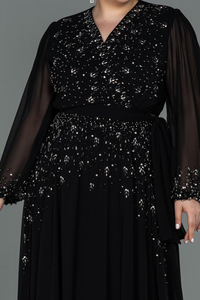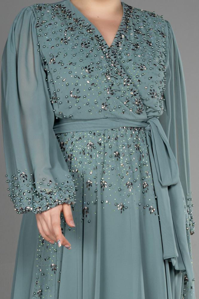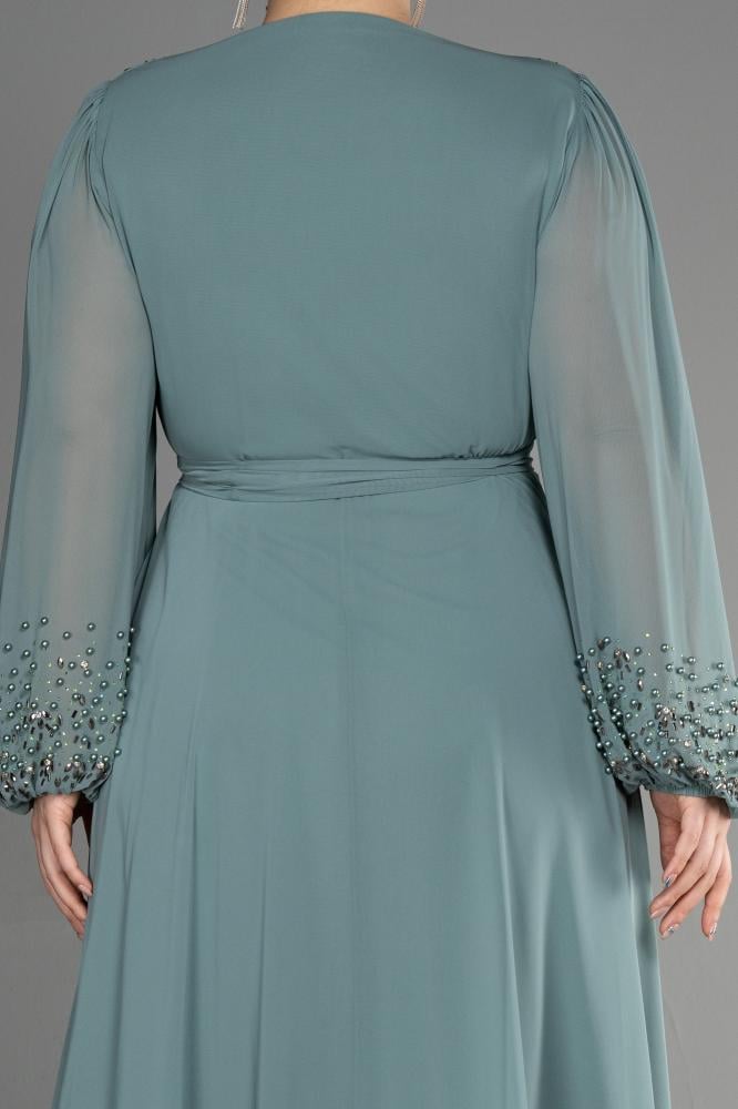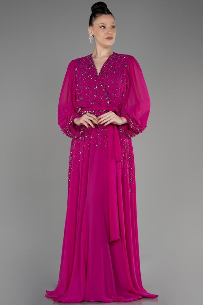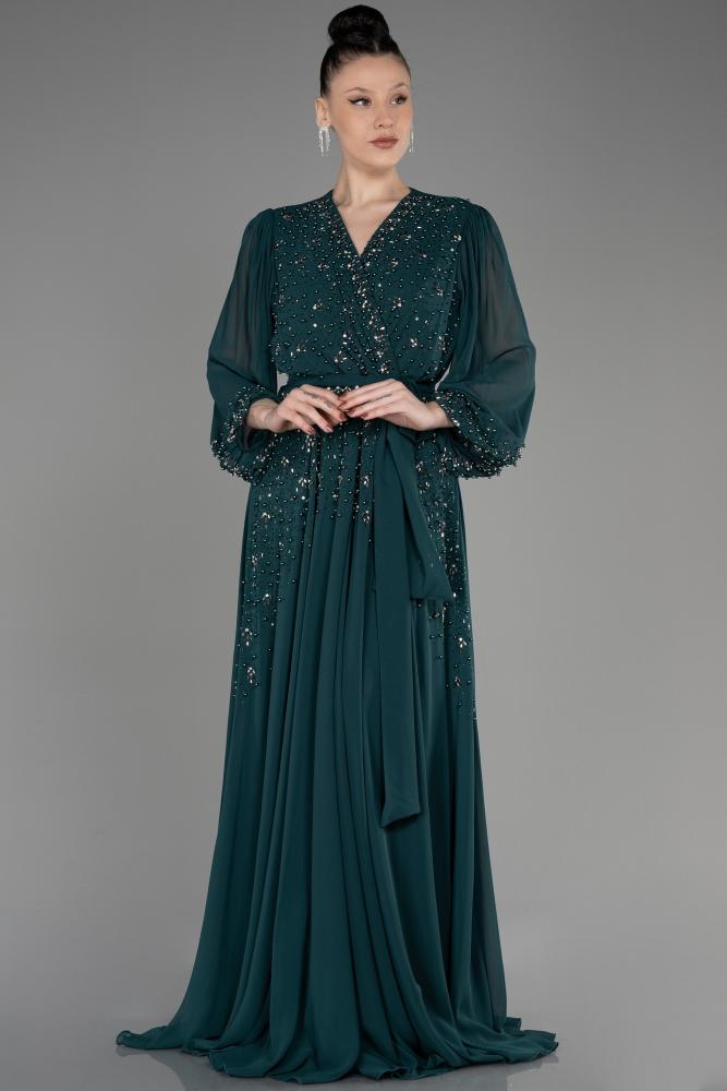 فستان سهرة من الشيفون الناعم بأكمام طويلة