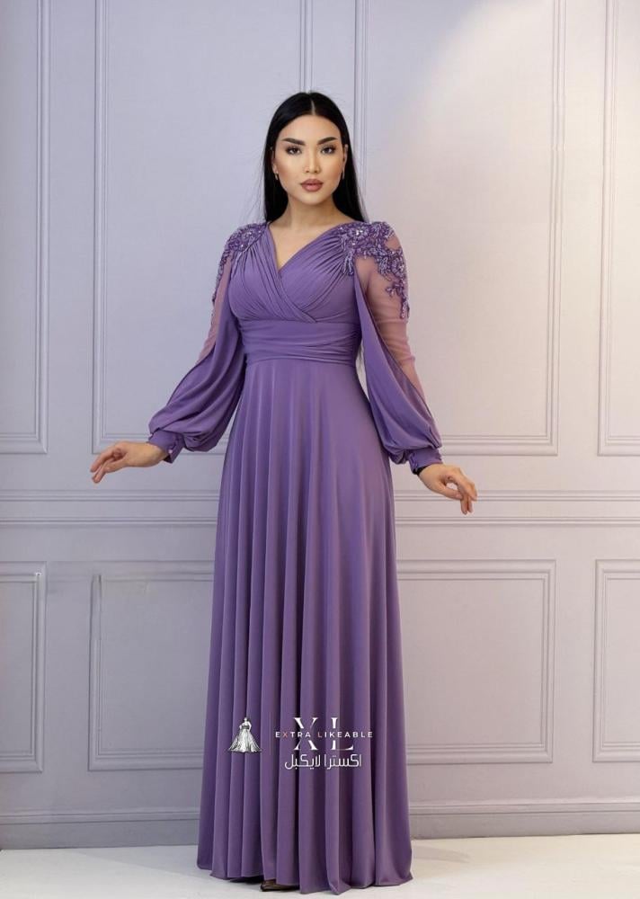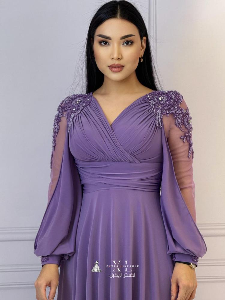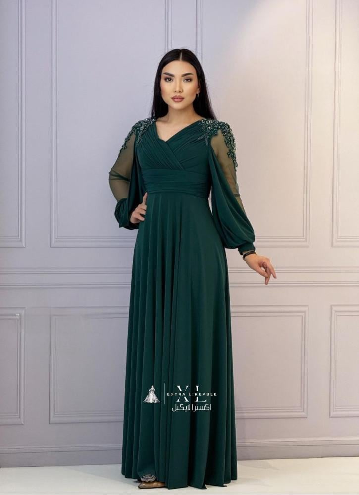 فستان سهرة ناعم بأكمام طويلة مطرزة – من اكسترا لايكبل