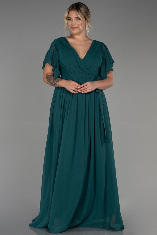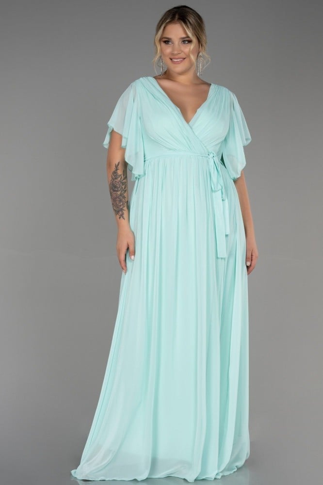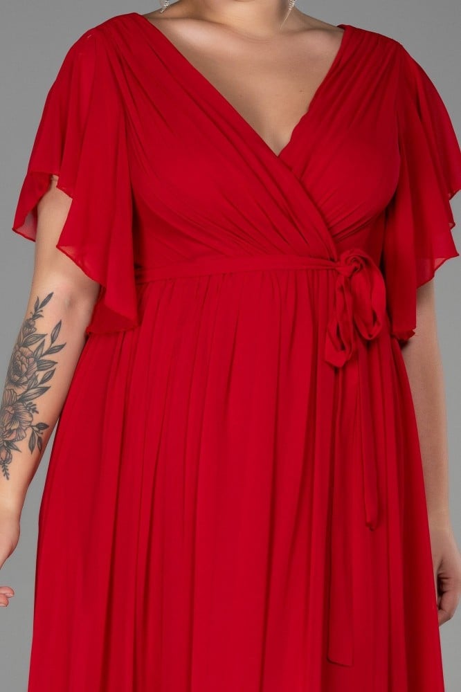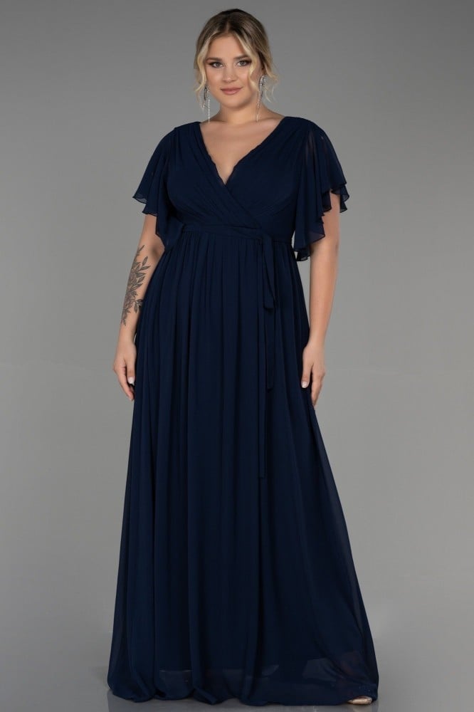 يتميز الفستان بقصة محتشمة مع ياقة على شكل حرف V وأنيقة تجمع بين الأناقة والراحة بشكل مثالي. مصنوع من الشيفون عالي الجودة