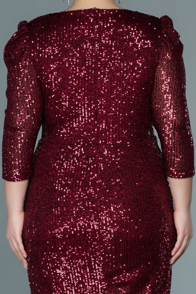 فستان سهرة أنيق متوسط الطول (ميدي). يتميز الفستان بقماش الترتر اللامع (scaly) الذي يضفي لمعانًا جذابًا على التصميم. يأتي الفستان بقصّة أنيقة مع شق جانبي يضيف لمسة من الجاذبية.