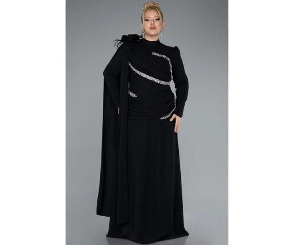 كما يأتي الفستان بمقاسات أوروبية واسعة من EU 44 إلى EU 50، مع حزام أنيق يحدد الخصر ليبرز القوام بطريقة راقية وبسيطة. إنه خيار مثالي لمحجبات الراغبات في إطلالة محتشمة وأنيقة في آن واحد، ليمنحك حضورًا يخطف الأنظار ويجمع بين الفخامة والأنوثة بأسلوب تركي أصيل،