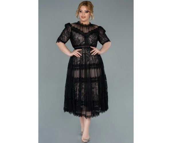 فستان حفلة دانتيل بتصميم ناعم محتشم