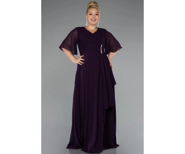 فستان سهرة شيفون طويل بأكمام قصيرة