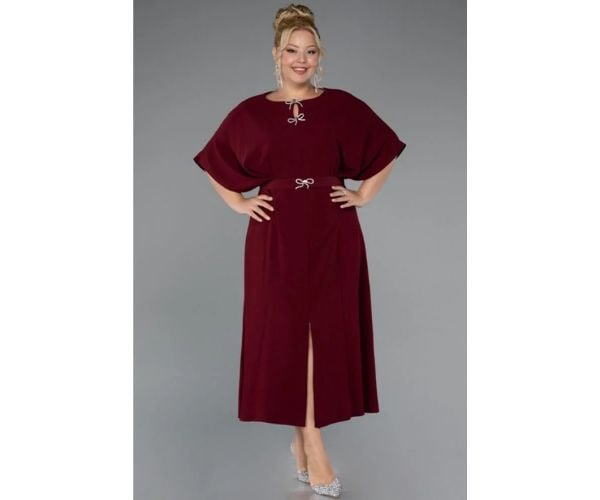 فستان سهرة ميدي بتصميم واسع